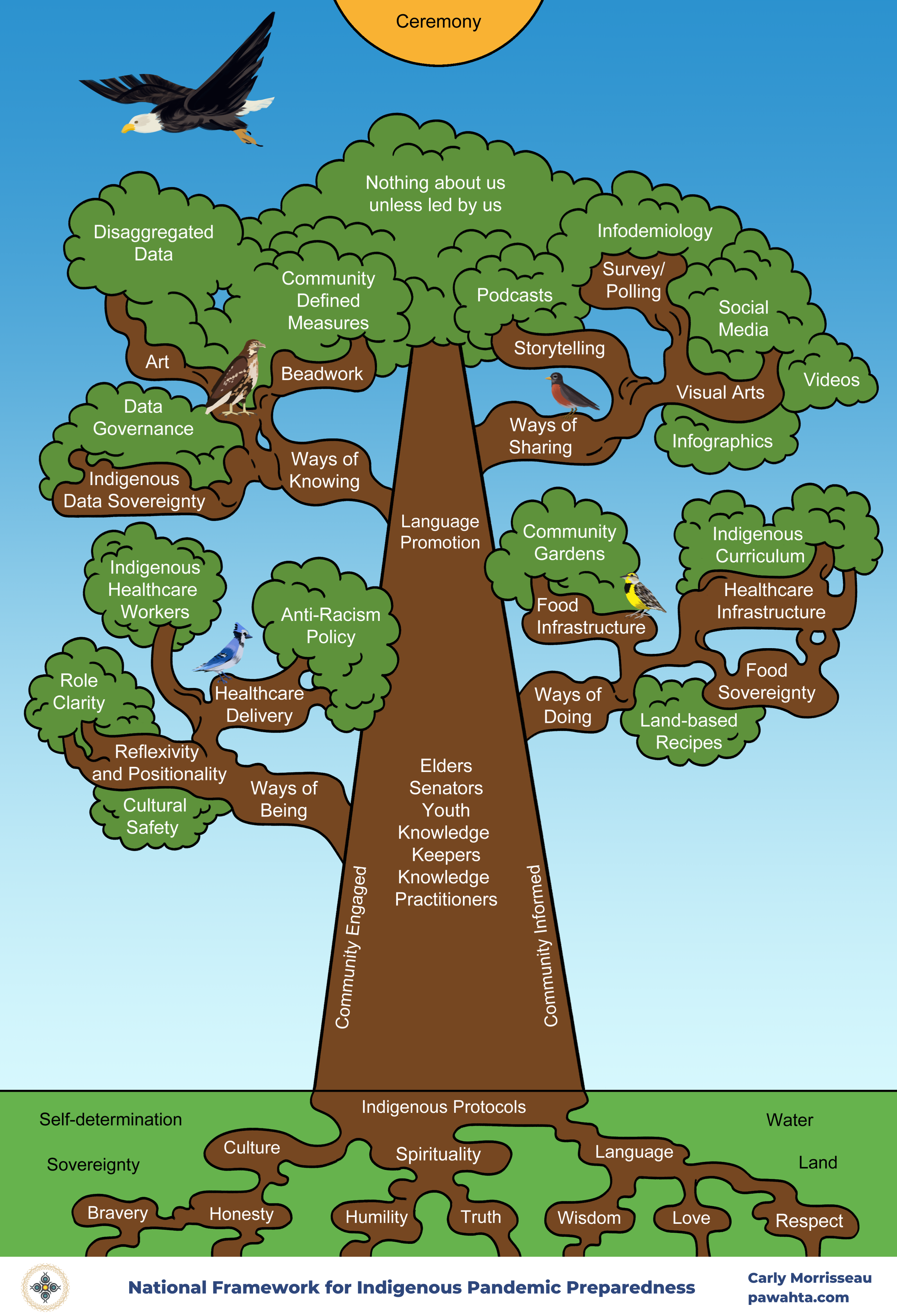The insights shared during this gathering informed the creation of a National Framework for Indigenous Pandemic Preparedness, which is grounded in Indigenous self-determination, ceremony, and connection to land and water. The framework is grounded in four core themes: