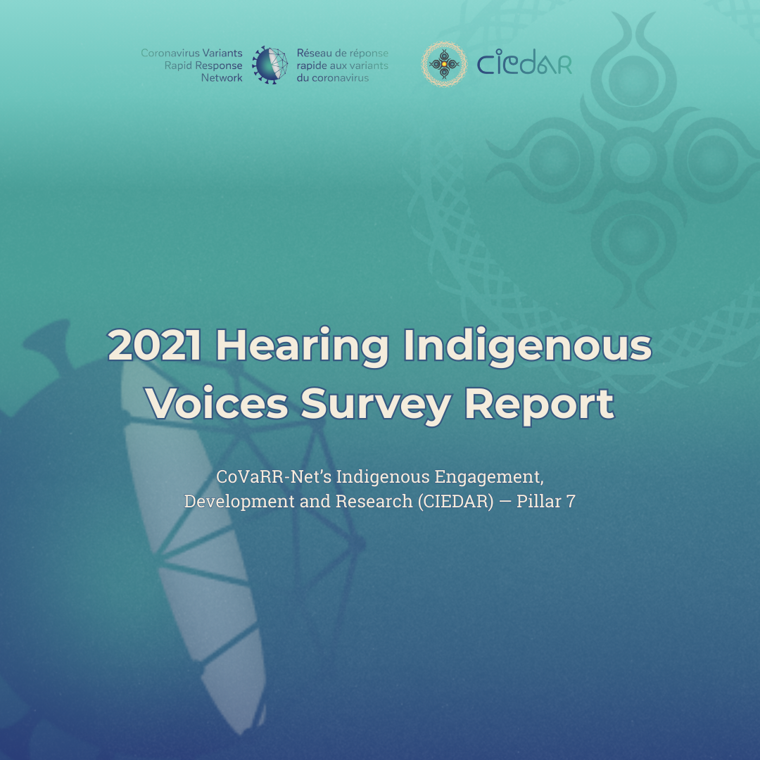 CoVaRR-Net’s CIEDAR hosted a virtual panel called “Indigenous Peoples and the Canadian Research Ecosystem Webinar” in collaboration with Genome Canada, the Global Alliance for Genomics and Health, and CanCOGen on December 6, 2021. Panelists included Dr. Jessica Kolopenuk, Taylor Morriseau, and Leona Star, and the panel was moderated by CIEDAR Lead Dr. Kimberly R. Huyser.